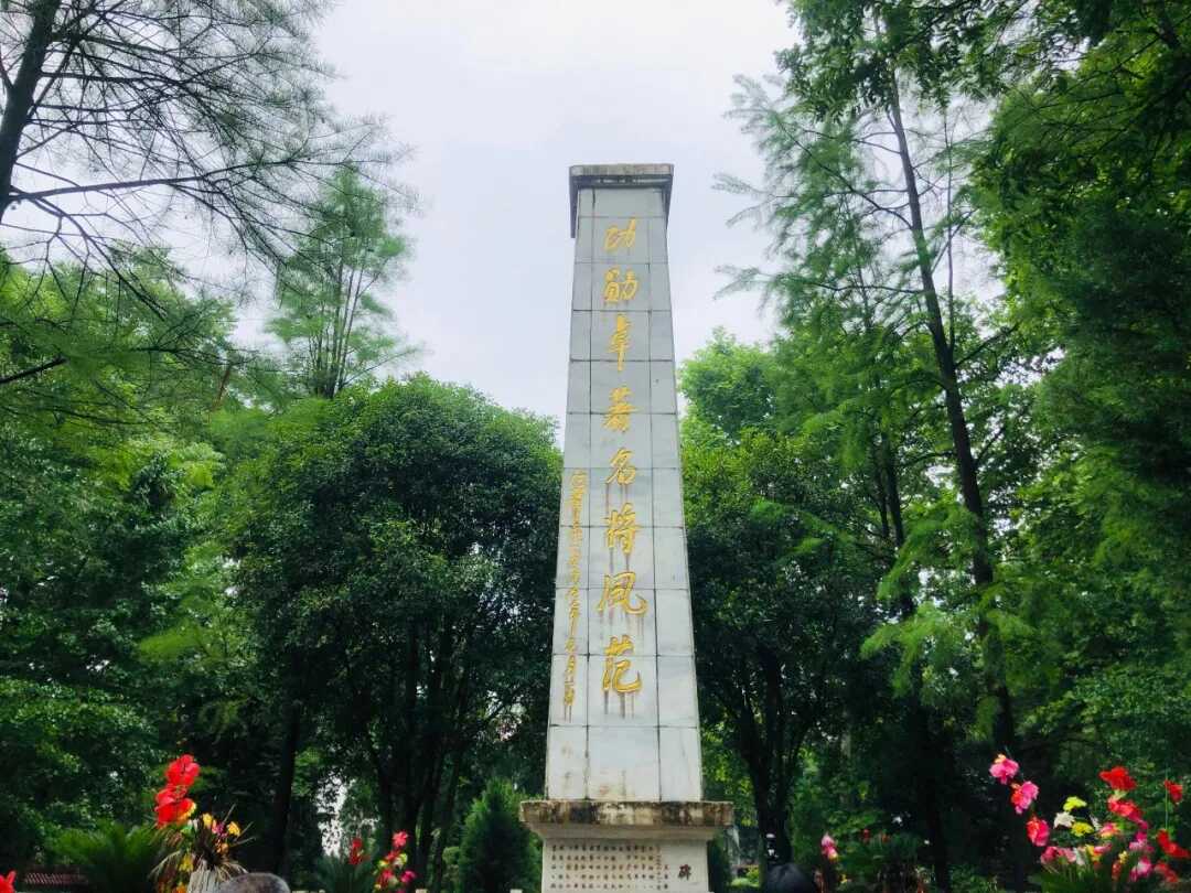王平將軍紀(jì)念碑矗立在蒼松翠柏叢中,莊嚴(yán)肅穆。