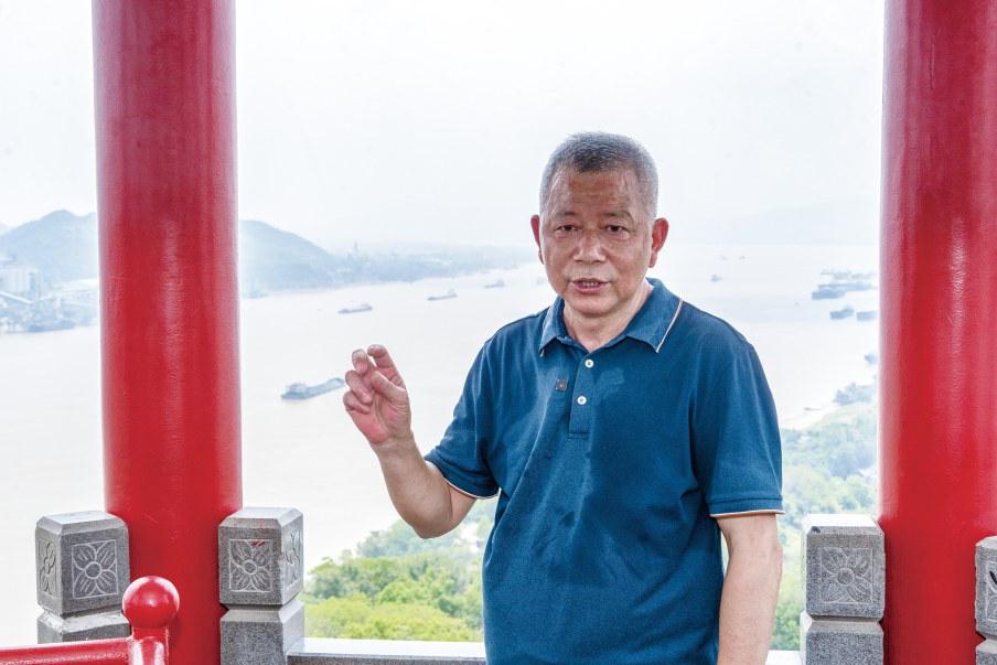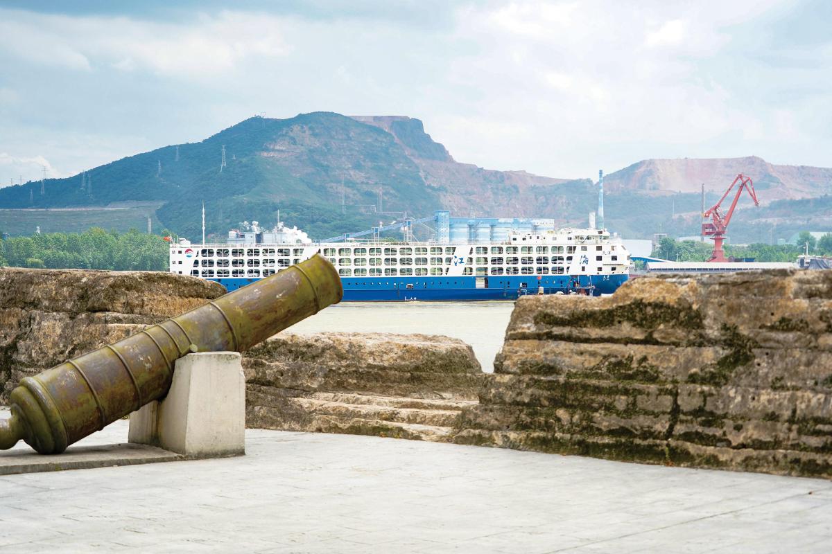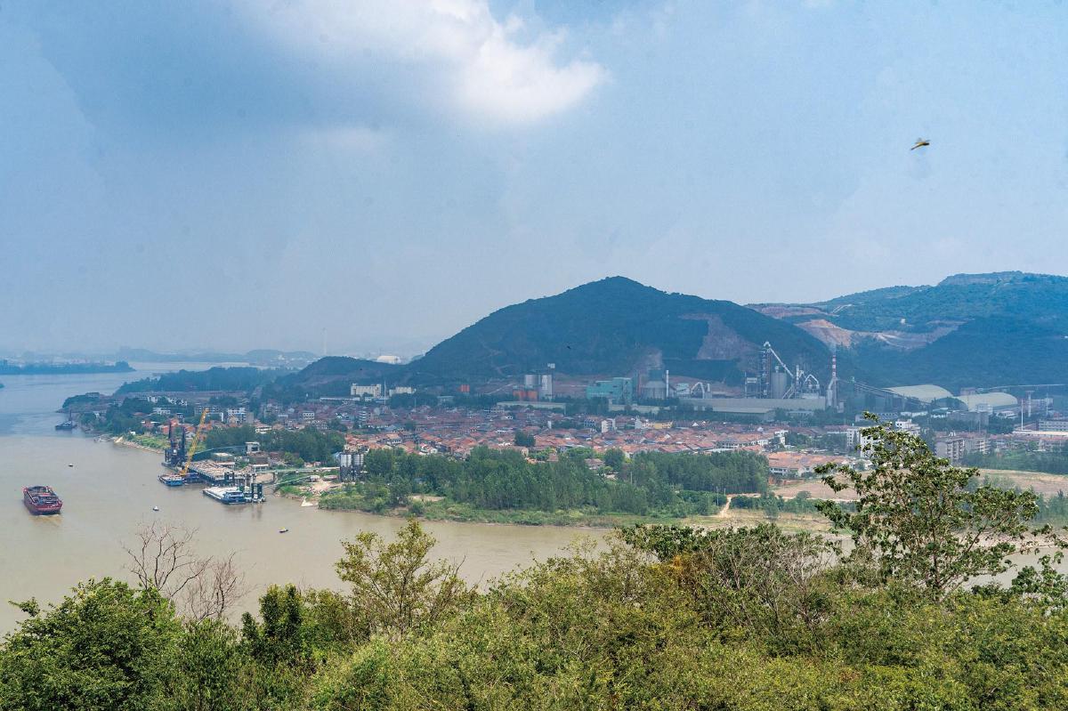 登山遠眺,長江煙波浩渺,航道船舶來往不斷。滾滾江水對面,田家鎮(zhèn)清晰可見。