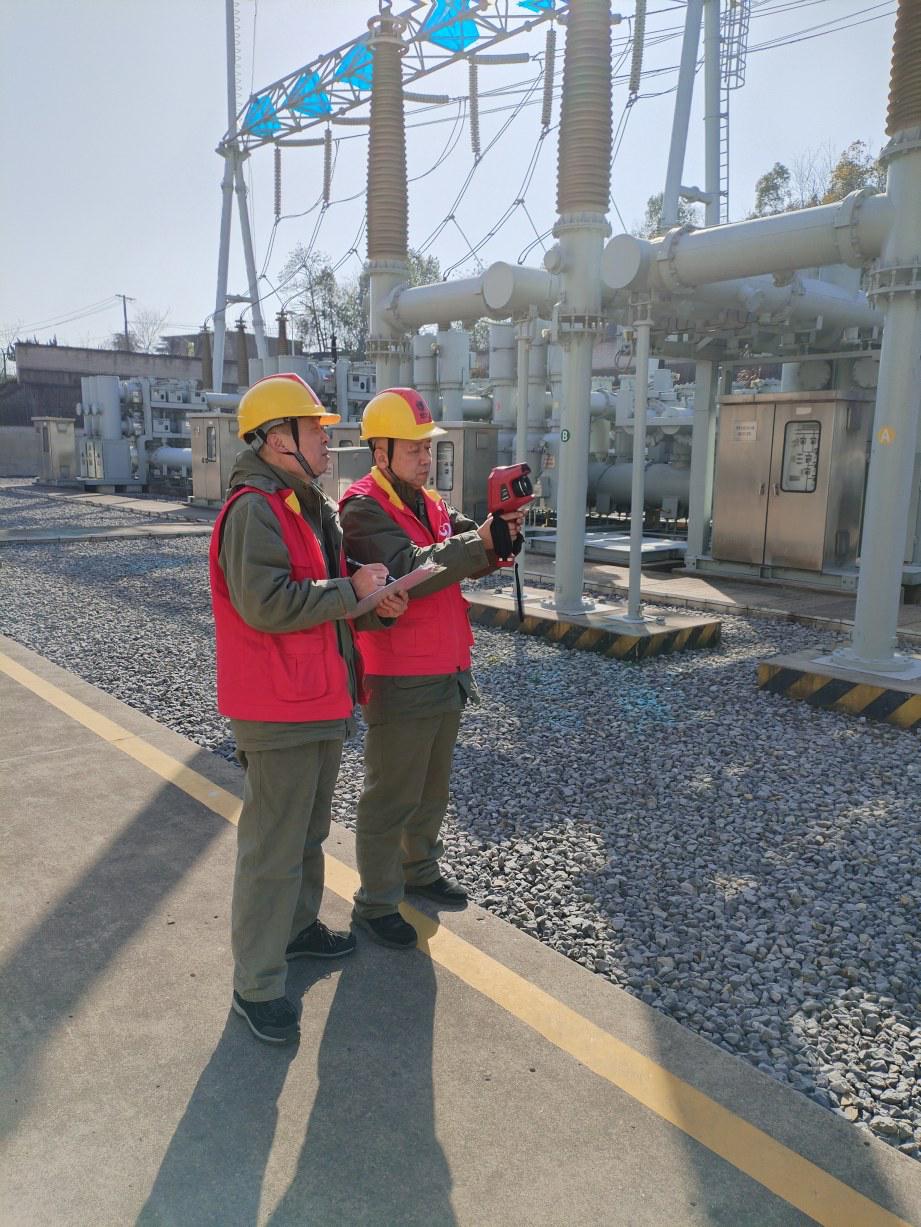 同一時(shí)間,220千伏青港湖變電站內(nèi)也是一片忙碌景象。運(yùn)維人員分工明確,緊張而有序地進(jìn)行著特巡工作。他們穿梭于各個(gè)設(shè)備之間,用專業(yè)的工具對設(shè)備進(jìn)行檢測。有的使用紅外測溫儀對設(shè)備的關(guān)鍵部位進(jìn)行溫度測量,有的在10千伏配電室內(nèi)進(jìn)行開關(guān)柜帶電檢測,有的則在記錄設(shè)備的運(yùn)行數(shù)據(jù)。