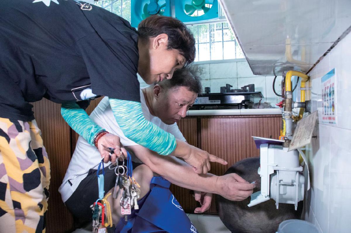 “唐媽媽家的燃?xì)獗碛行┕收?,你和我一起去看看??月30日上午,在開(kāi)發(fā)區(qū)·鐵山區(qū)建設(shè)路社區(qū)礦一路22棟樓下,于文英撥通了居民李文東的電話(huà)。話(huà)音剛落,李文東匆匆下樓,與于文英會(huì)合,直奔老人唐雪霞家。